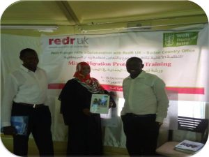 This needs making Welt Hanger helfe and Danish Refugee Council in collaboration with RedR UK Sudan Country Office to organize five day training on mixed migration protection, targeted 32 participants from Child Development Foundation (CDF), Refugee and Humanitarian Commissions, World Vision organization in addition to local partners and migrants representatives in Kassal State. The training aimed at exchanging information, analysis and enhancing inter-agency cooperation and networking among participants as a necessary prerequisite for effectively addressing the various protection challenges of managing mixed migratory movements in Eastern Sudan States.